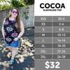The Cocoa sleeveless top has a high neck with full coverage and a high-low hemline. She has a relaxed fit.